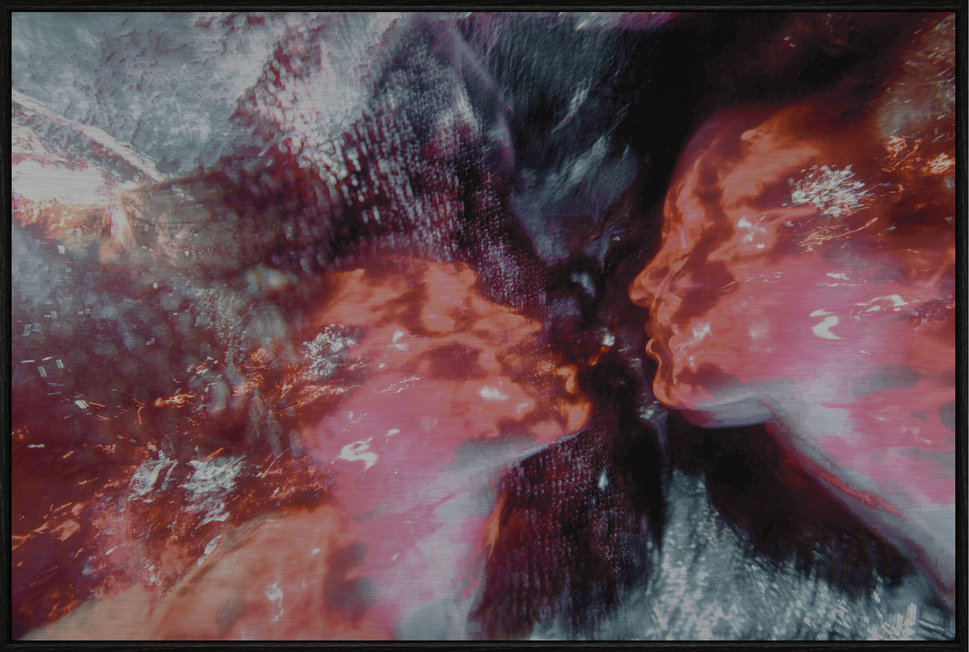 Printed on aluminium to preserve the tension between fluidity and permanence.